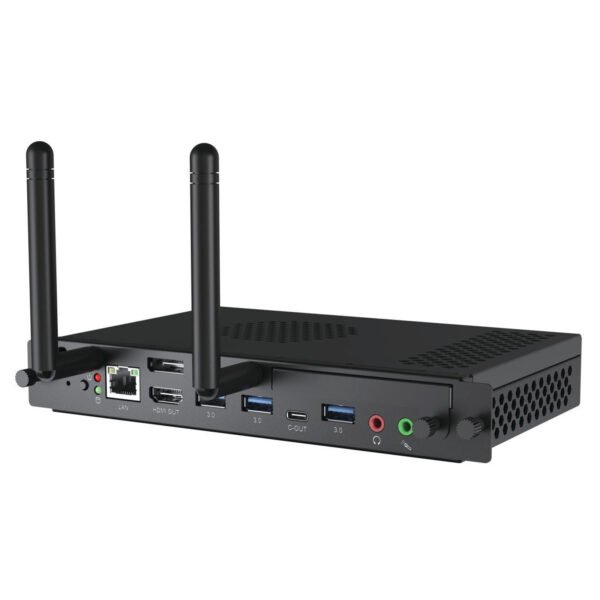 Ce module est équipé d’un processeur Intel Core i7 de 12e génération, de 16 Go de RAM DDR4 et d’un SSD de 256 Go, offrant ainsi des performances fiables pour les applications professionnelles et éducatives. Il s’intègre facilement à l’arrière des écrans compatibles, transformant ces derniers en stations de travail Windows complètes.
